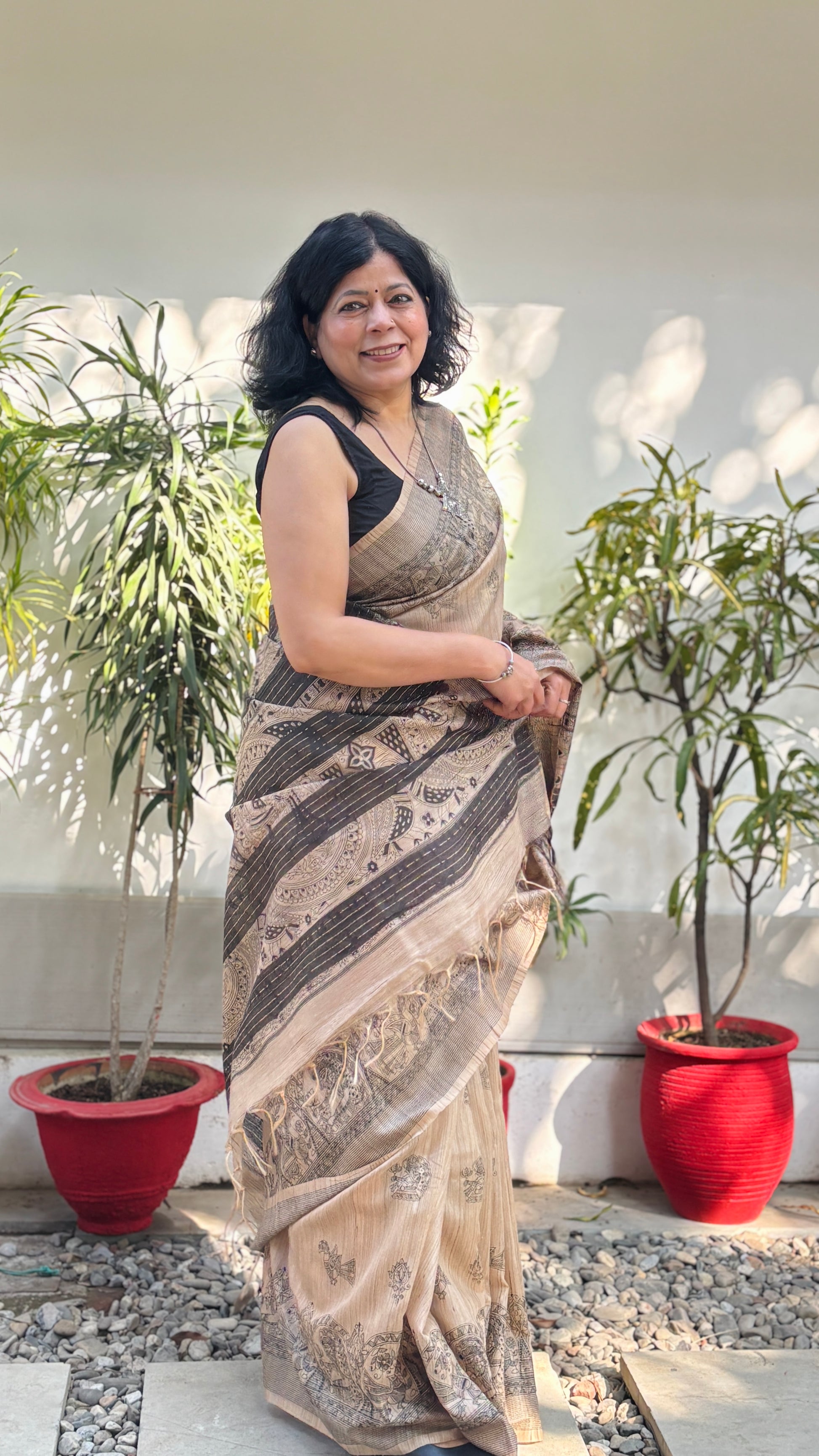 Crafted from premium handloom silk, this saree offers a perfect blend of tradition and comfort. The soft, fluid texture makes it exceptionally easy to drape, with pleats that fall effortlessly and stay neatly in place. Designed to create a refined and graceful silhouette, it lends a naturally classy look to every drape. Versatile in style, this saree is ideal for both formal occasions and special gatherings, making it a timeless addition to your wardrobe.