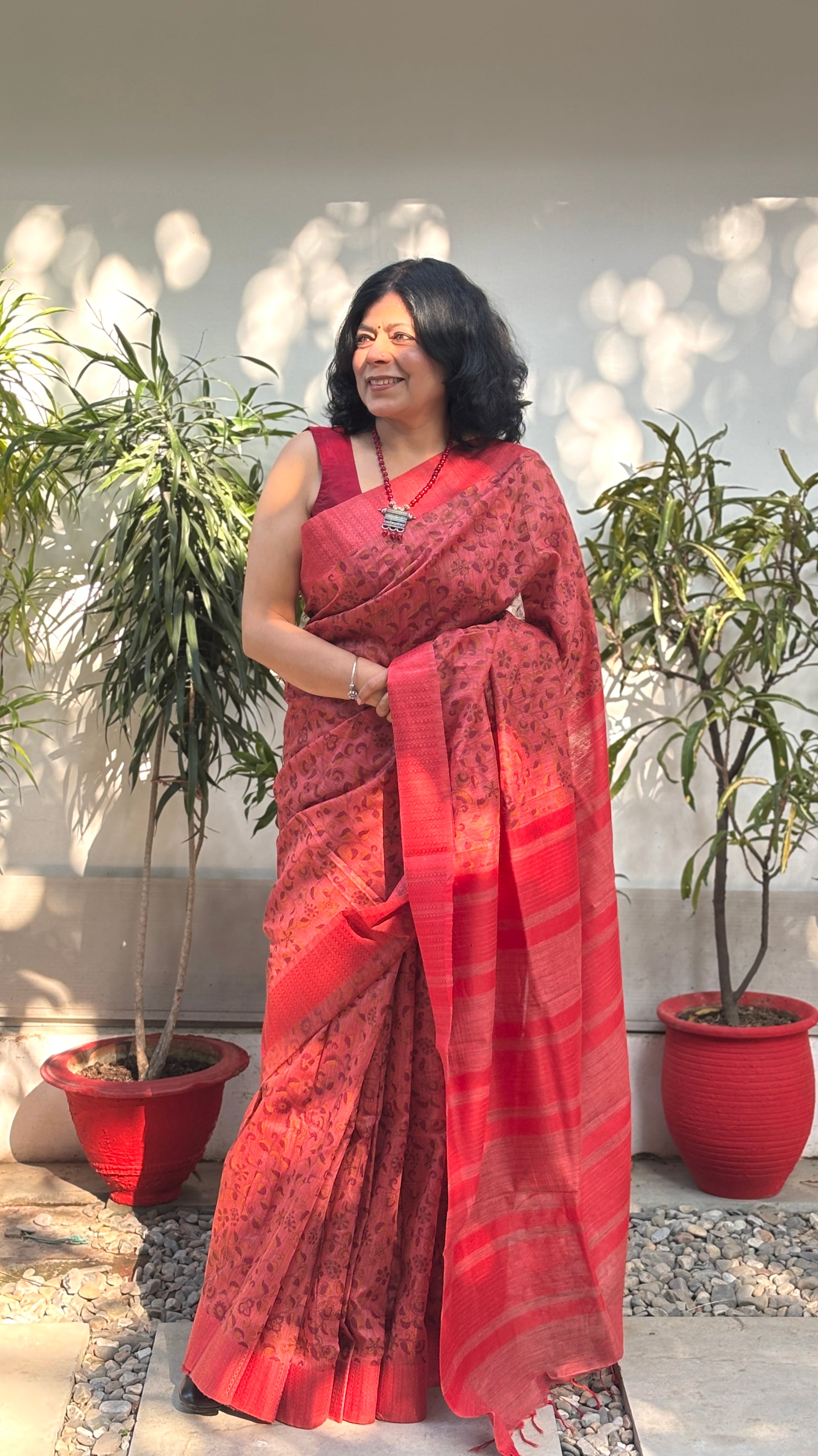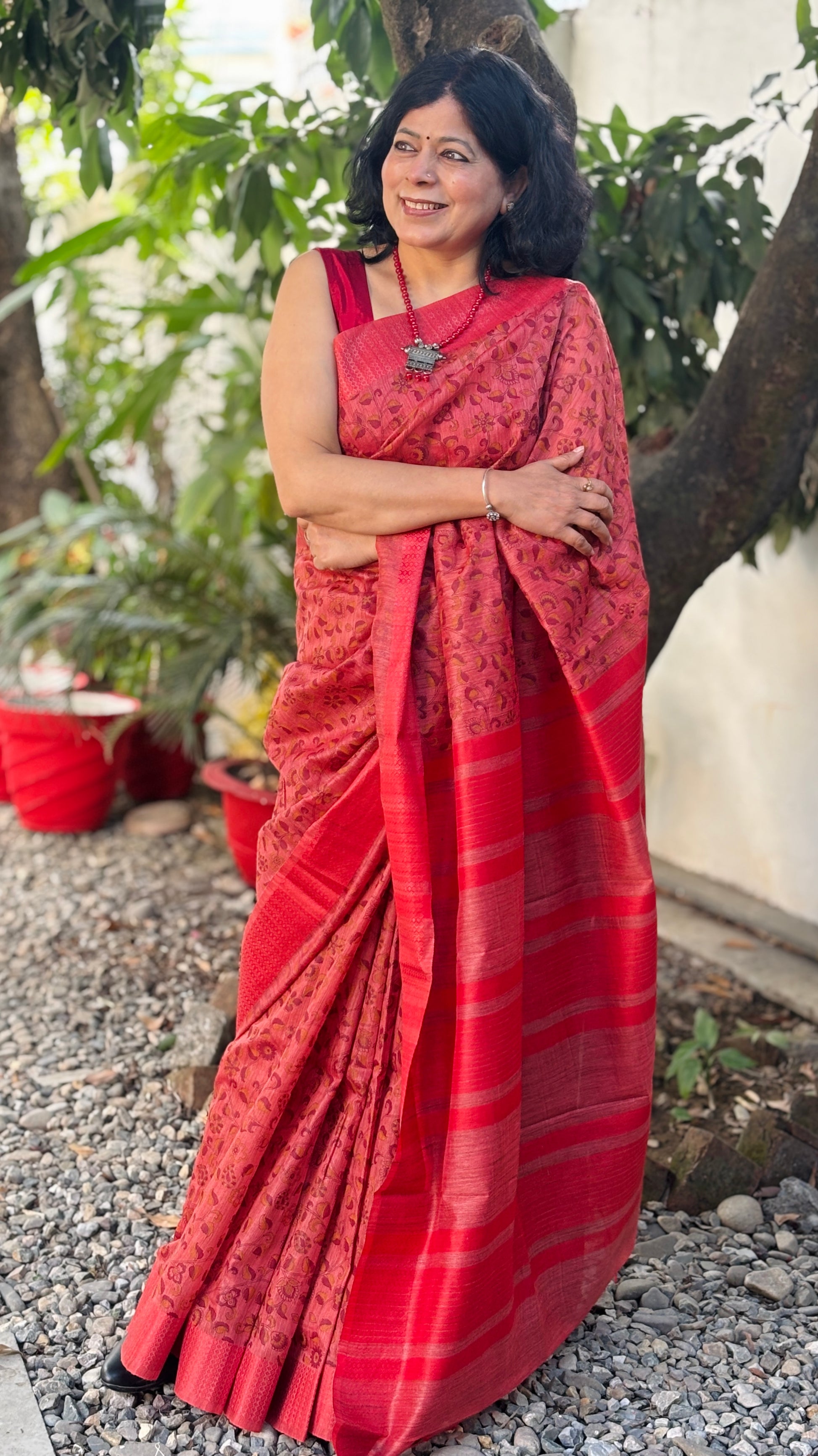 Crafted from premium handloom silk, this saree offers a perfect blend of tradition and comfort. The soft, fluid texture makes it exceptionally easy to drape, with pleats that fall effortlessly and stay neatly in place. Designed to create a refined and graceful silhouette, it lends a naturally classy look to every drape. Versatile in style, this saree is ideal for both formal occasions and special gatherings, making it a timeless addition to your wardrobe.