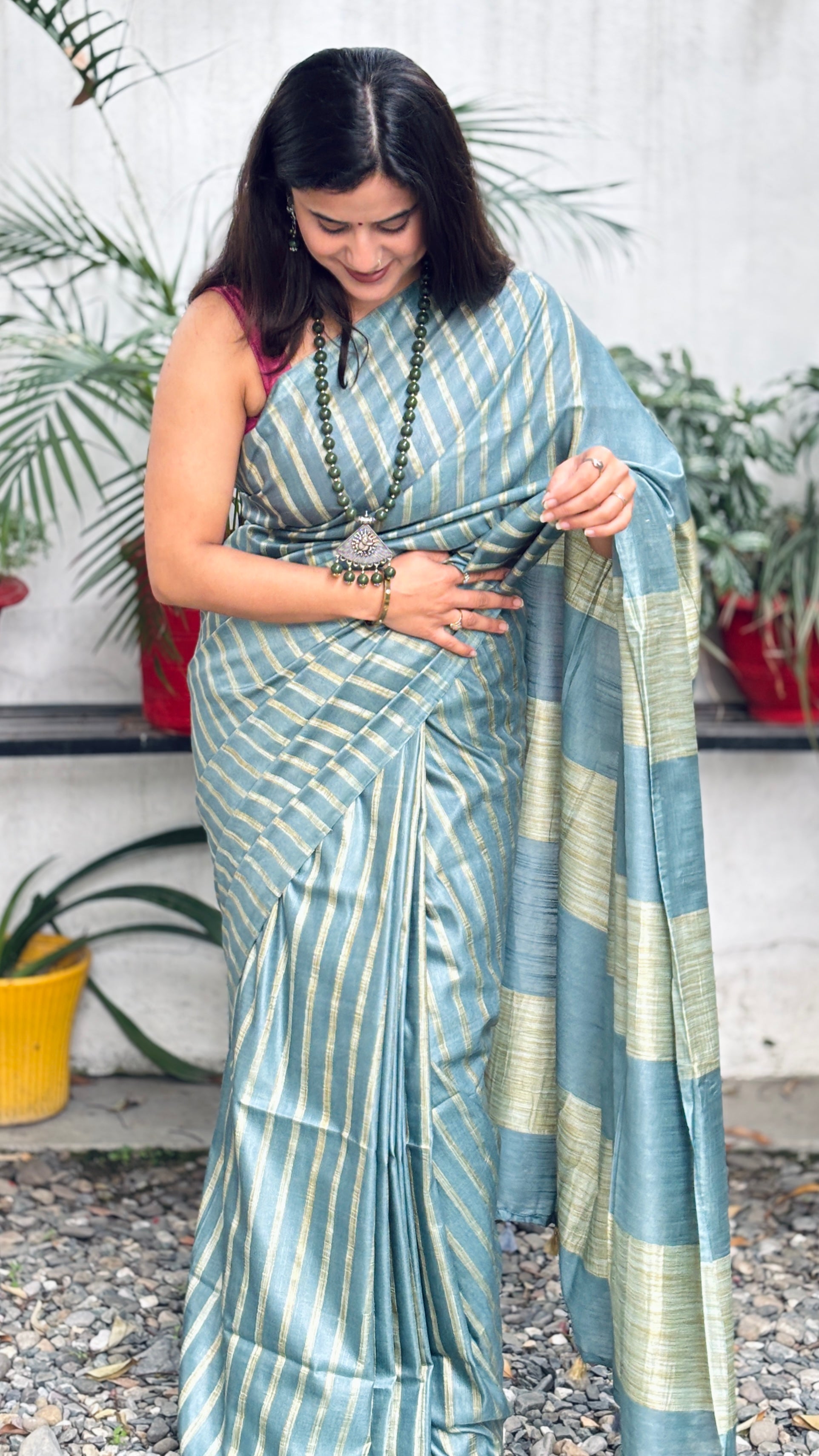 Slate Blue Striped Saree
